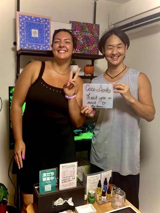 They received a custom-made scrub and oil mix treatment! I was happy that they were pleased with how smooth their skin became♪